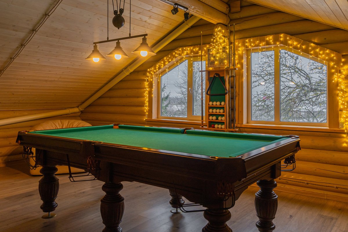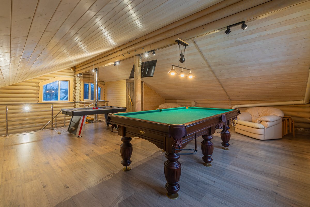 Я живу рядом и часто хожу сюда в баню — это мое любимое место для отдыха. Больше всего нравится просторный домик с бильярдом на втором этаже, где можно расслабиться на мягких диванах и креслах. Обожаю камин, где можно самому подкидывать дрова — это создает особую атмосферу. В этот раз приятно удивил теплый бассейн, было приятно, особенно когда светило солнце.